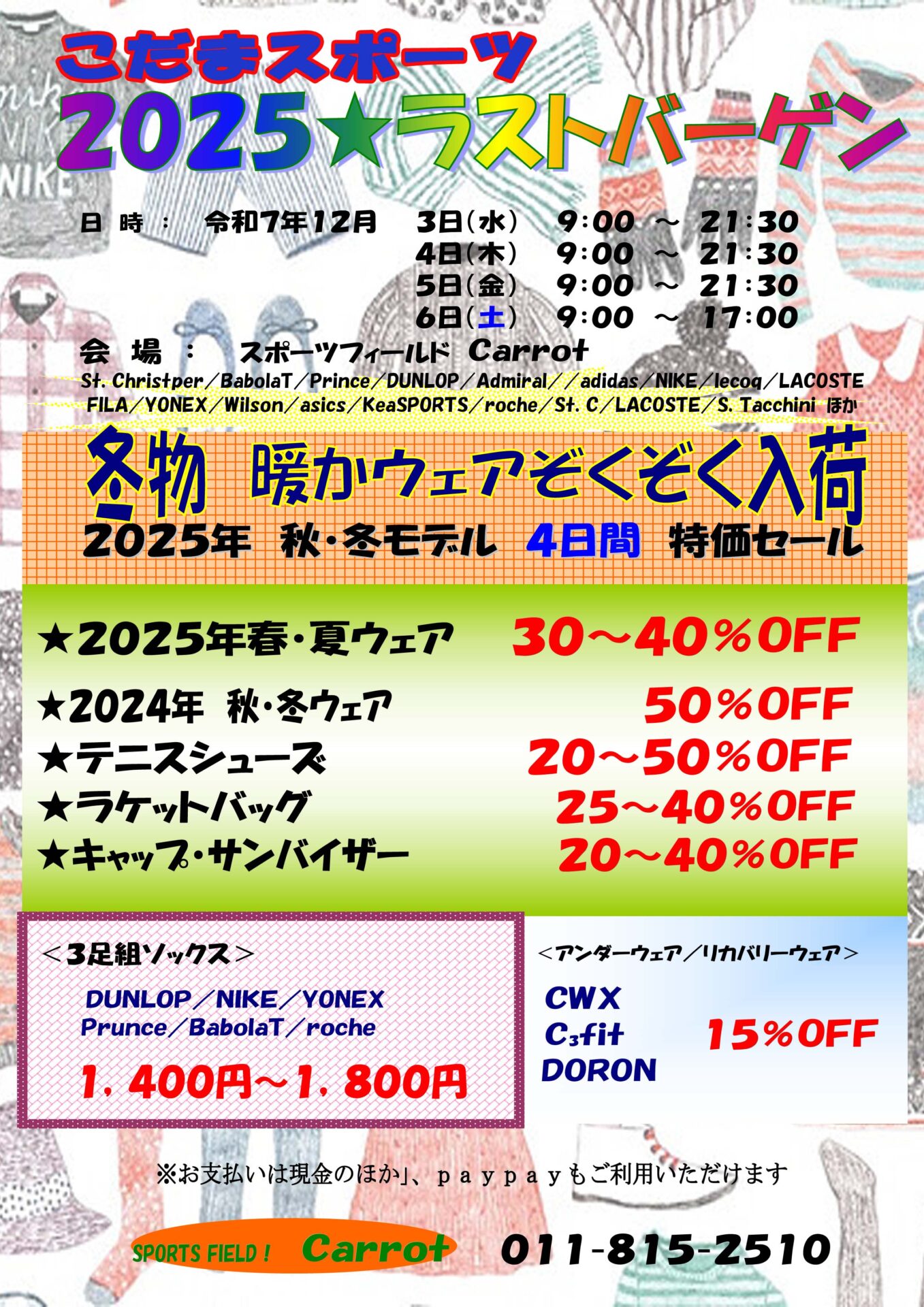 こだまスポーツバーゲンセール開催!!