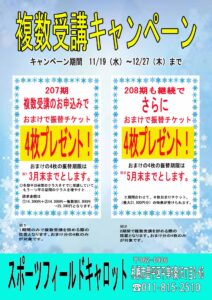 複数受講を申し込むとさらに4枚チケットがもらえるキャンペーンです