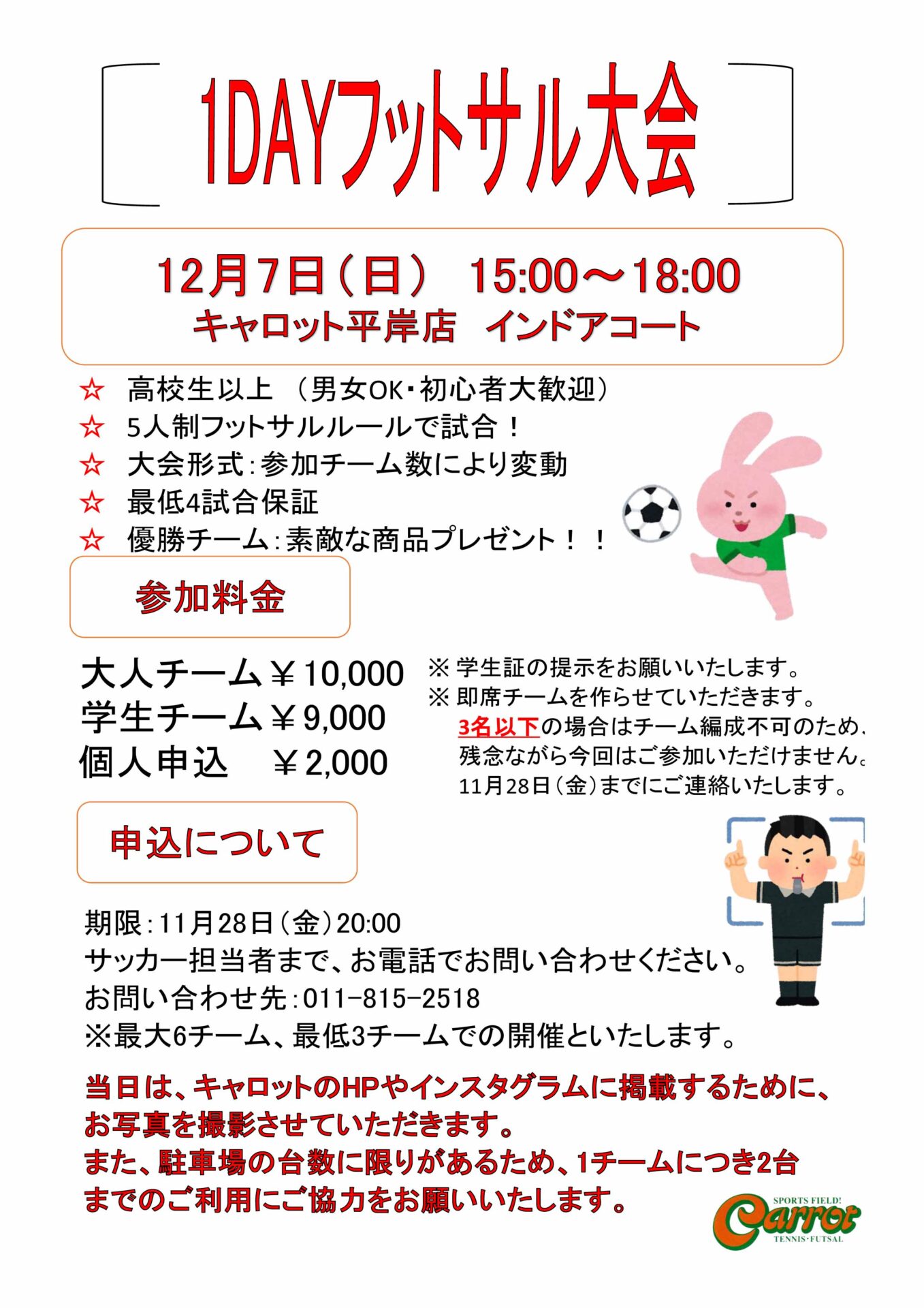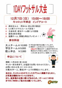 申し込み方法につきましては、スポーツフィールドキャロット、サッカー担当までご連絡下さい!