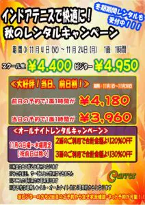 レンタル2026年1月25日2月インドアコートレンタルキャンペーン