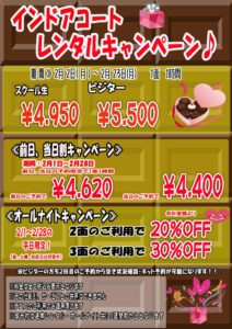 レンタル2026年1月25日2月インドアコートレンタルキャンペーン