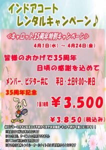 レンタル2026年3月28日35周年インドアレンタルキャンペーン【2026/4/1-4/24】